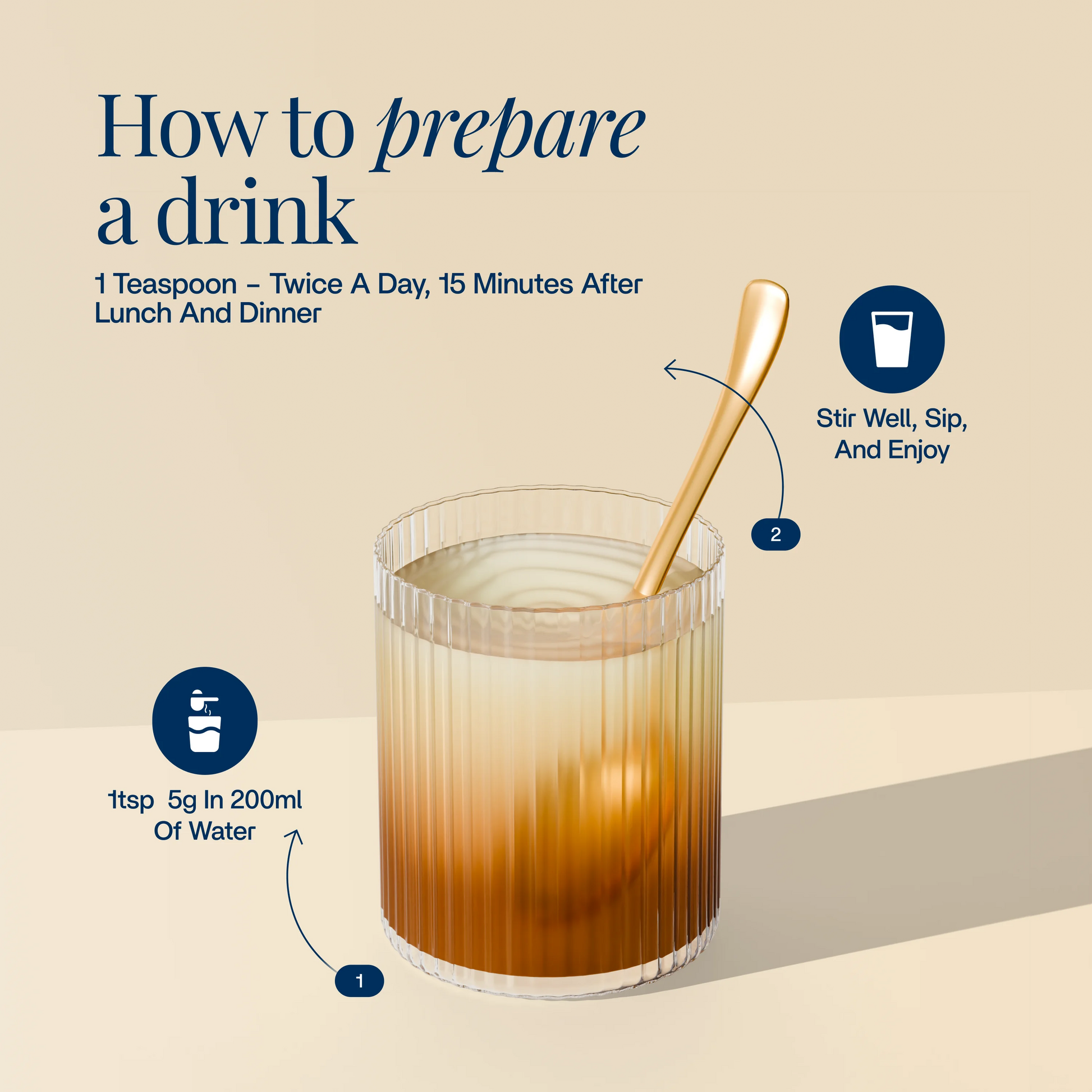 Add 5g of Blood Sugar Support to 150 ml of water.