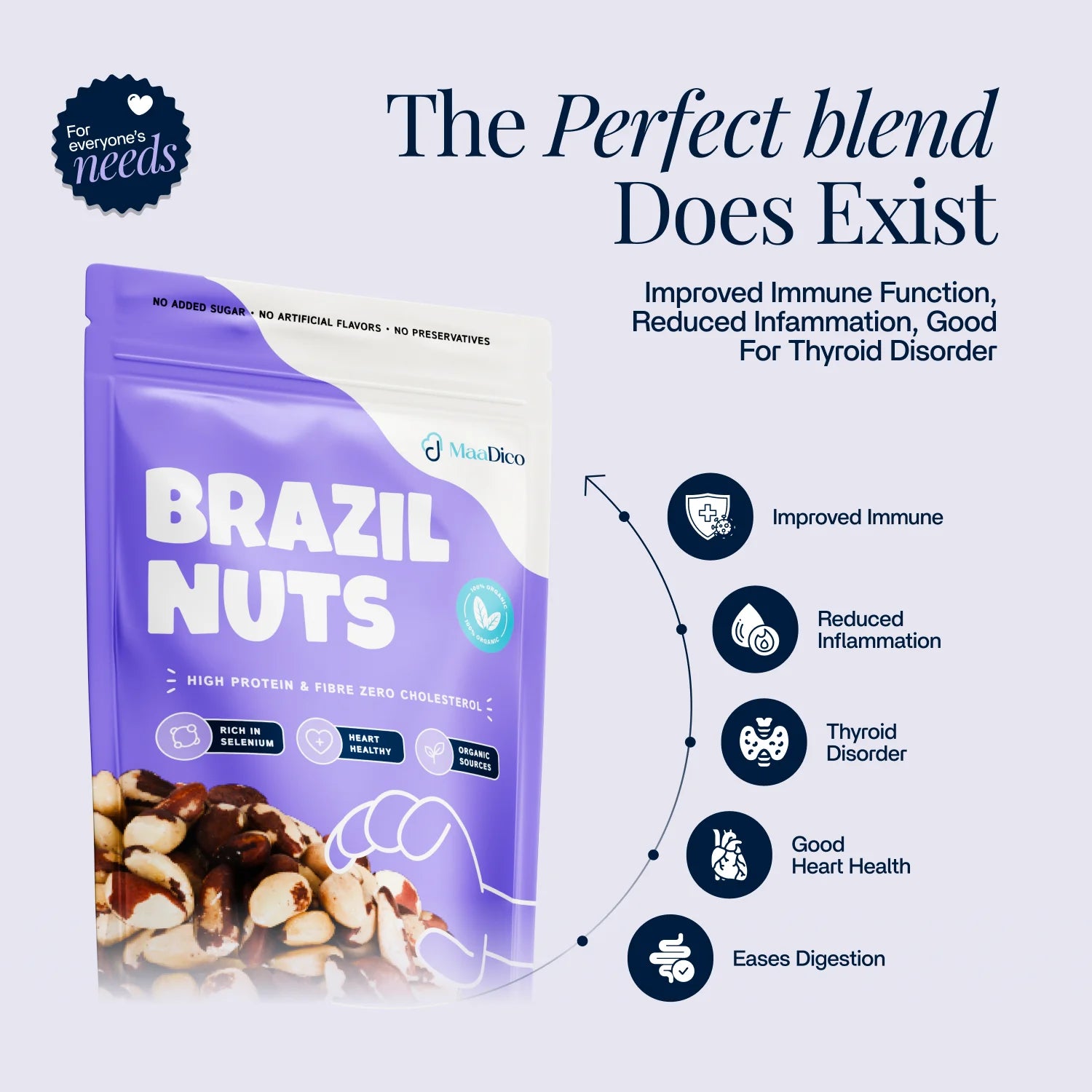 Brazil nuts are a natural source of selenium, a mineral that supports healthy thyroid function. Including a small amount of Brazil nuts in your daily diet can help maintain balanced thyroid health and promote overall wellness.