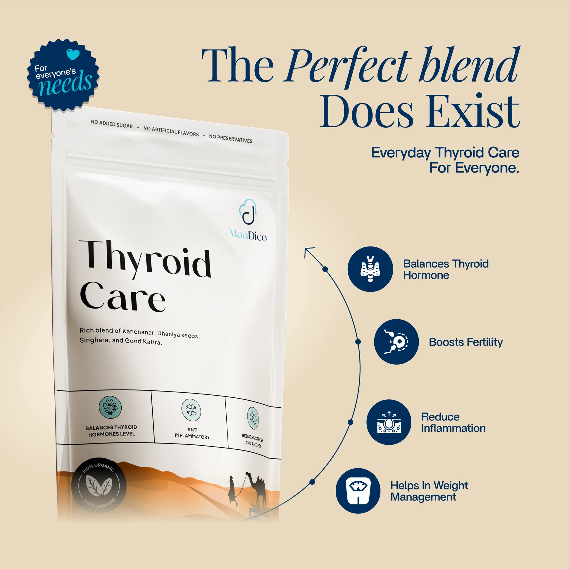Our Thyroid Care Tea is a carefully created product that aids your journey to daily well-being and supports your body's systemic balance. It contributes to vibrant overall health and supports your internal harmony by assisting with efficient metabolic processes.