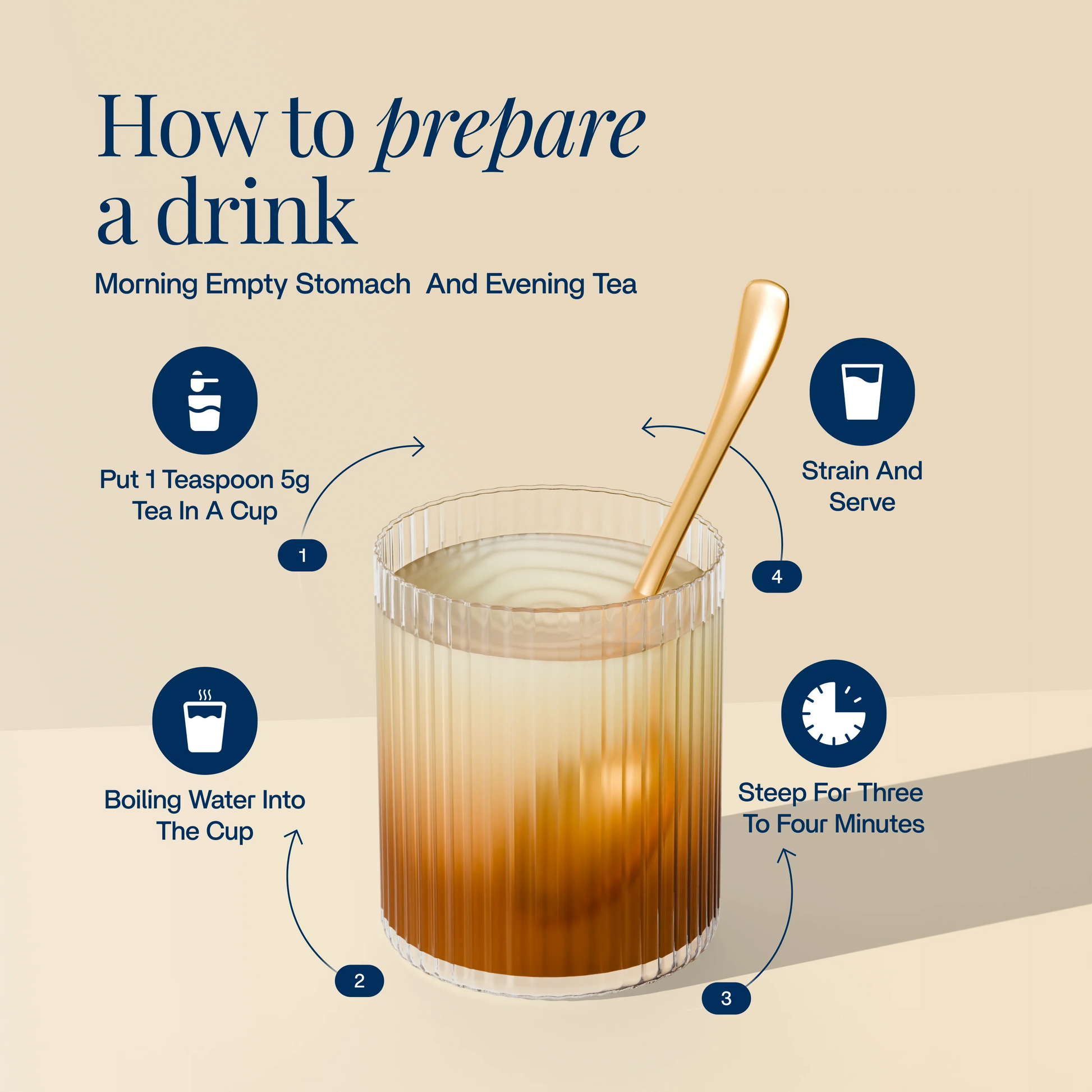 This tea helps ease occasional tiredness, encourages active metabolism, and supports your body's natural vitality. It improves your everyday routine by supporting improved metabolic health and increasing energy levels.